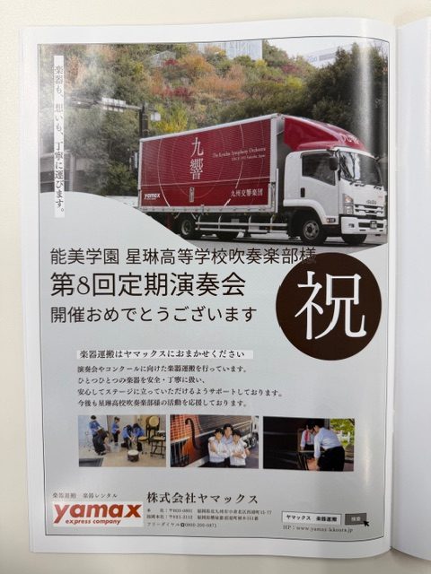 協賛させていただいた星琳高校様より、お礼として定期演奏会のチケットとパンフレットが届きました✉✨