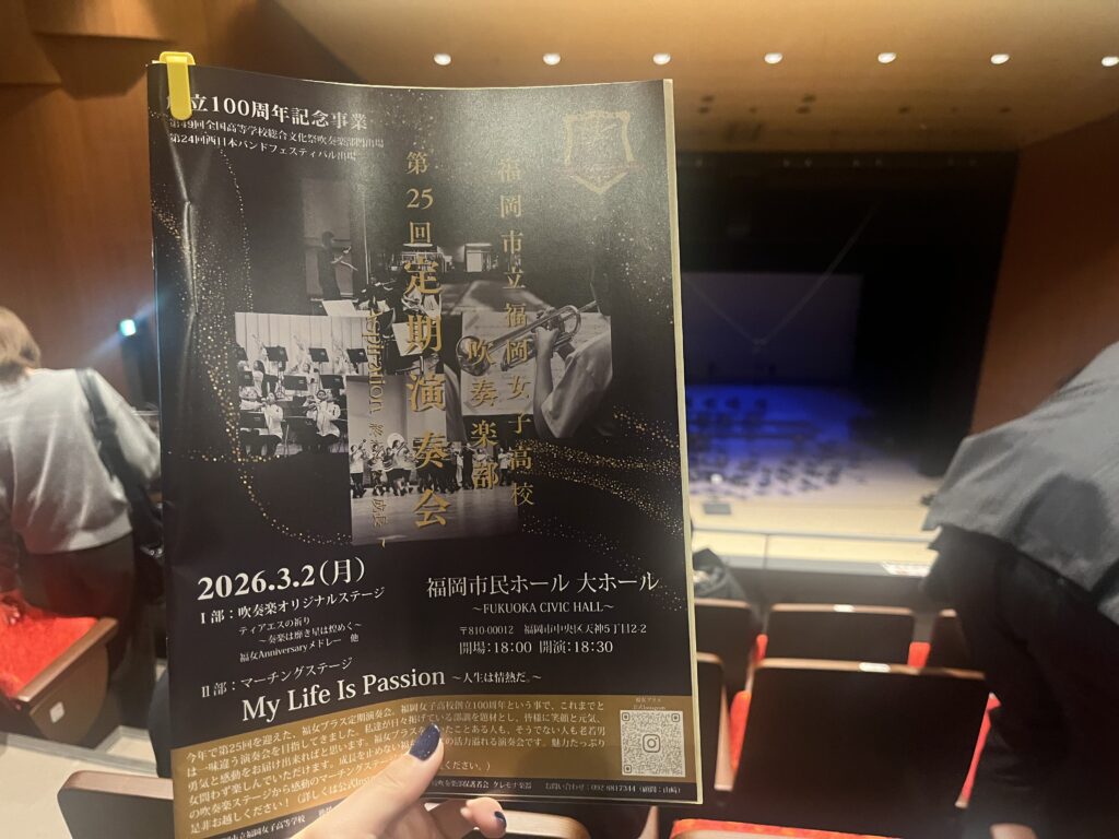 3月2日(月)に福岡市民ホール大ホールにて行われました福岡女子高等学校吹奏楽部 第25回定期演奏会に行ってきました♩